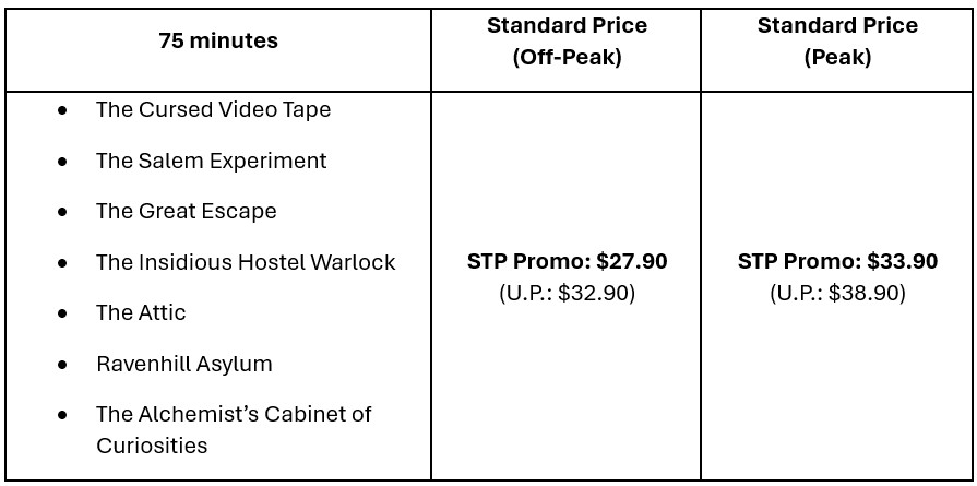 Trapped is the #1 escape room in Singapore. (New Season 6) Featuring over 70++ latest escape room props with new animatronics. 7 exciting themes, 28 hidden chambers & 2 NPC actors in our new Cursed Video Tape & The Great Escape games.